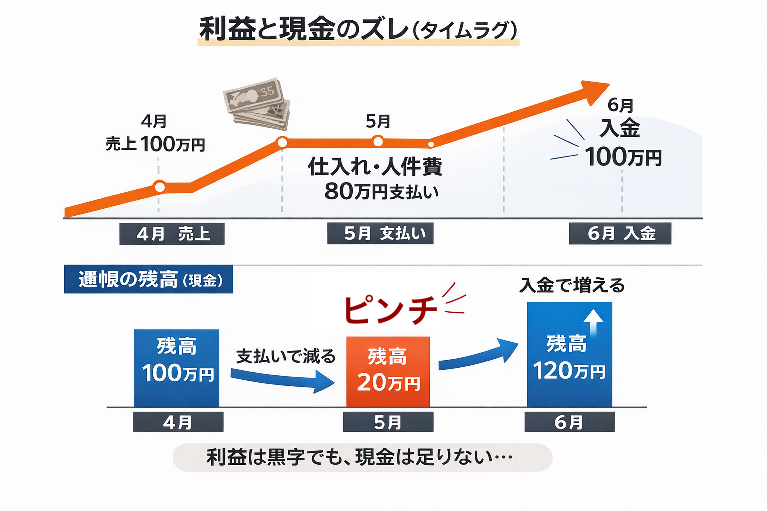 「利益が出ているのに、お金がない」。一見矛盾しているこの現象の理由は、実はシンプルです。
