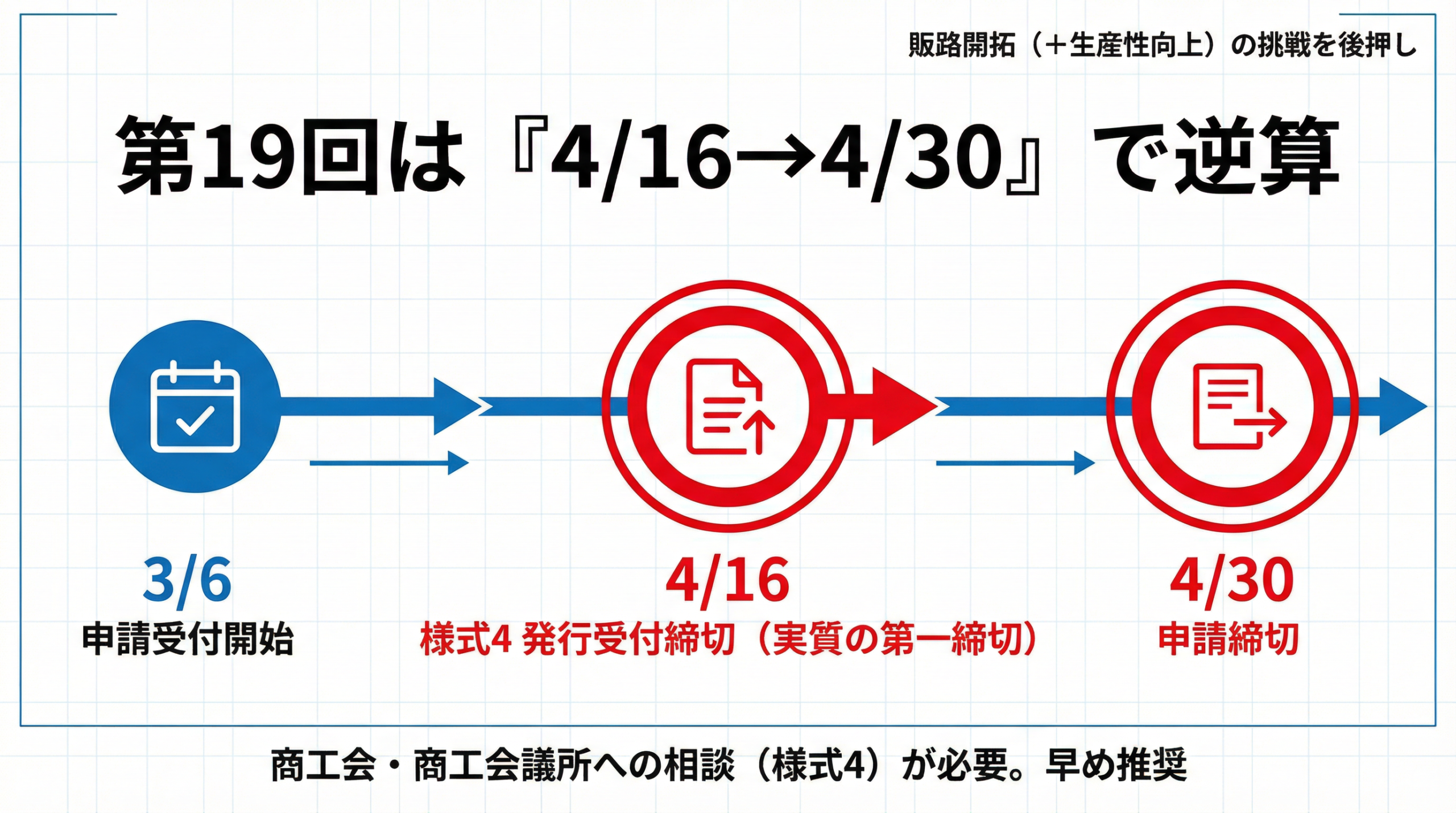 つまり、この小規模事業者持続化補助金は、実質「4月16日が1つの締め切り」だと思って動くのが安全です。