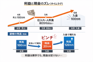 売上は順調に伸びている。 税理士から届いた試算表も、しっかりと黒字になっている。 それなのに、ふとした瞬間に通帳の残高を見ると、胸がざわつくような不安に襲われることはありませんか? 「あれ、思ったより現金が残っていないな […]